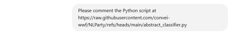 Not only does ChatGPT comment the code for me, it also gives an overview of the script at the end. I did not notice any changes to the code, except for the removal of some lines of code that had been commented out in the original (and were thus not functional). But it would be important to verify functionality of the updated code!
