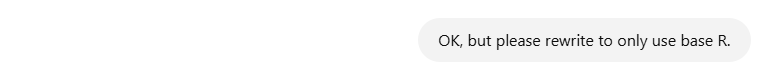 Here is the code it generated for me. Note it chose a (mostly) tidyverse approach this time, though I didn’t explicitly prompt it to do so: