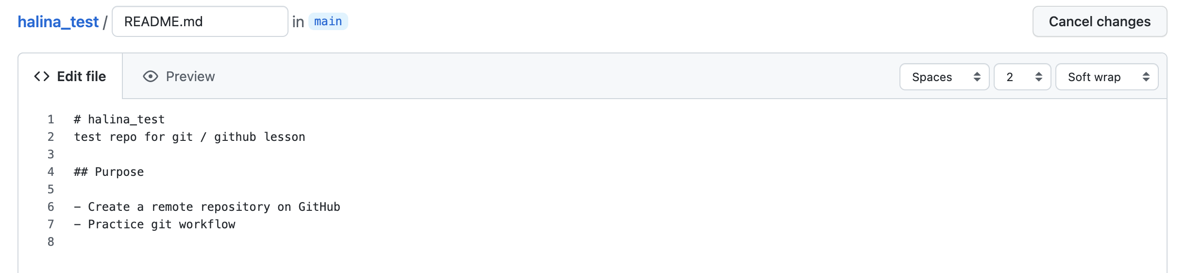 There are a number of different workflows for creating version-controlled repositories that are stored on GitHub. We started with Exercise 1 and Exercise 2 using one common approach: creating a remote repository on GitHub first, then cloning that repository to your local computer (you used your {FIRSTNAME}_test repo).