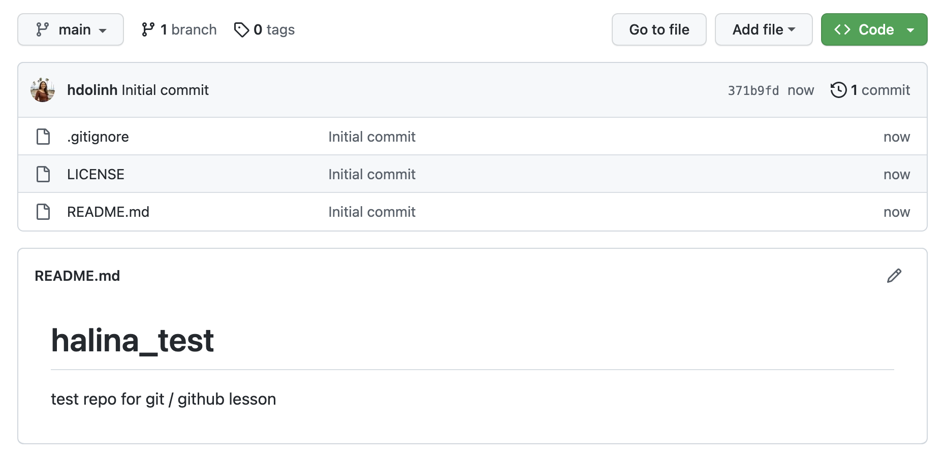 However, you may find yourself in the situation where you have an existing directory (i.e. a “normal” folder) of code that you want to make a Git repository out of, and then send it to GitHub. In this last exercise, we will practice this workflow using your training_{USERNAME} project.
