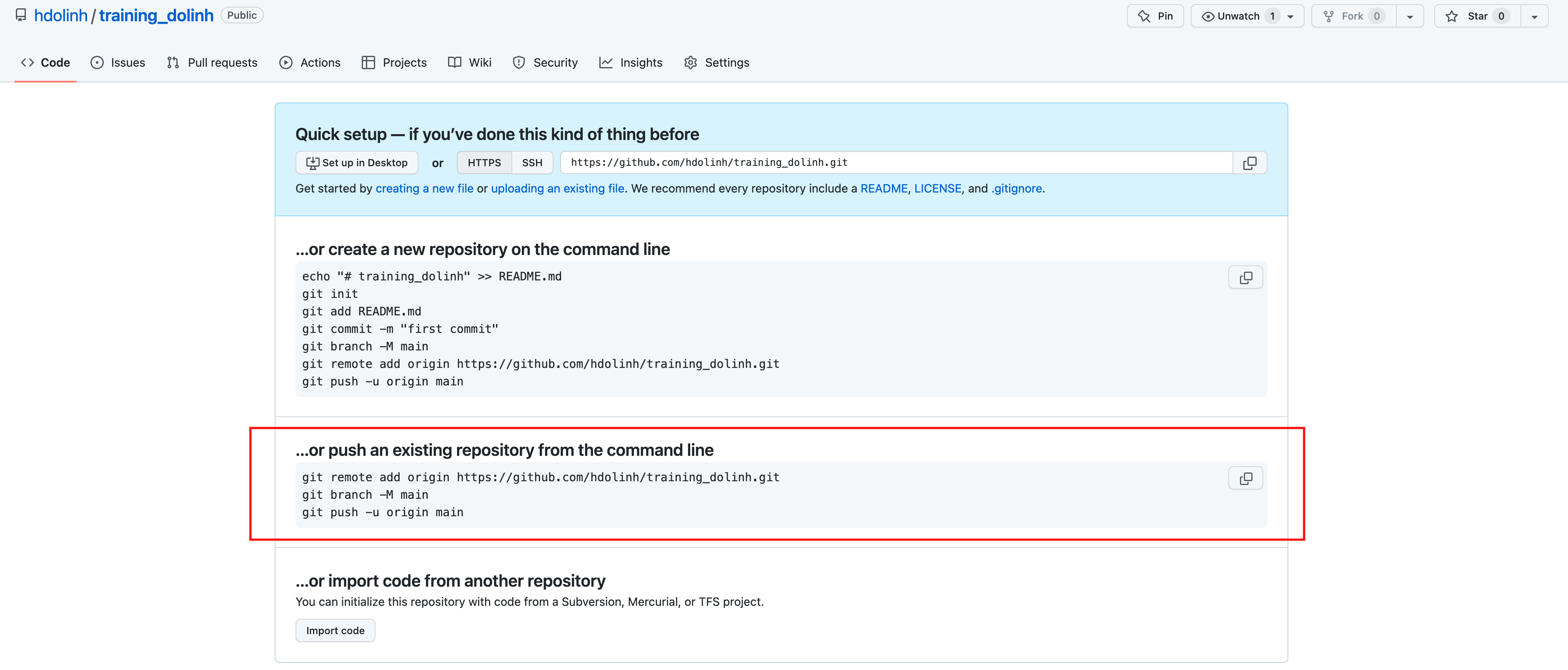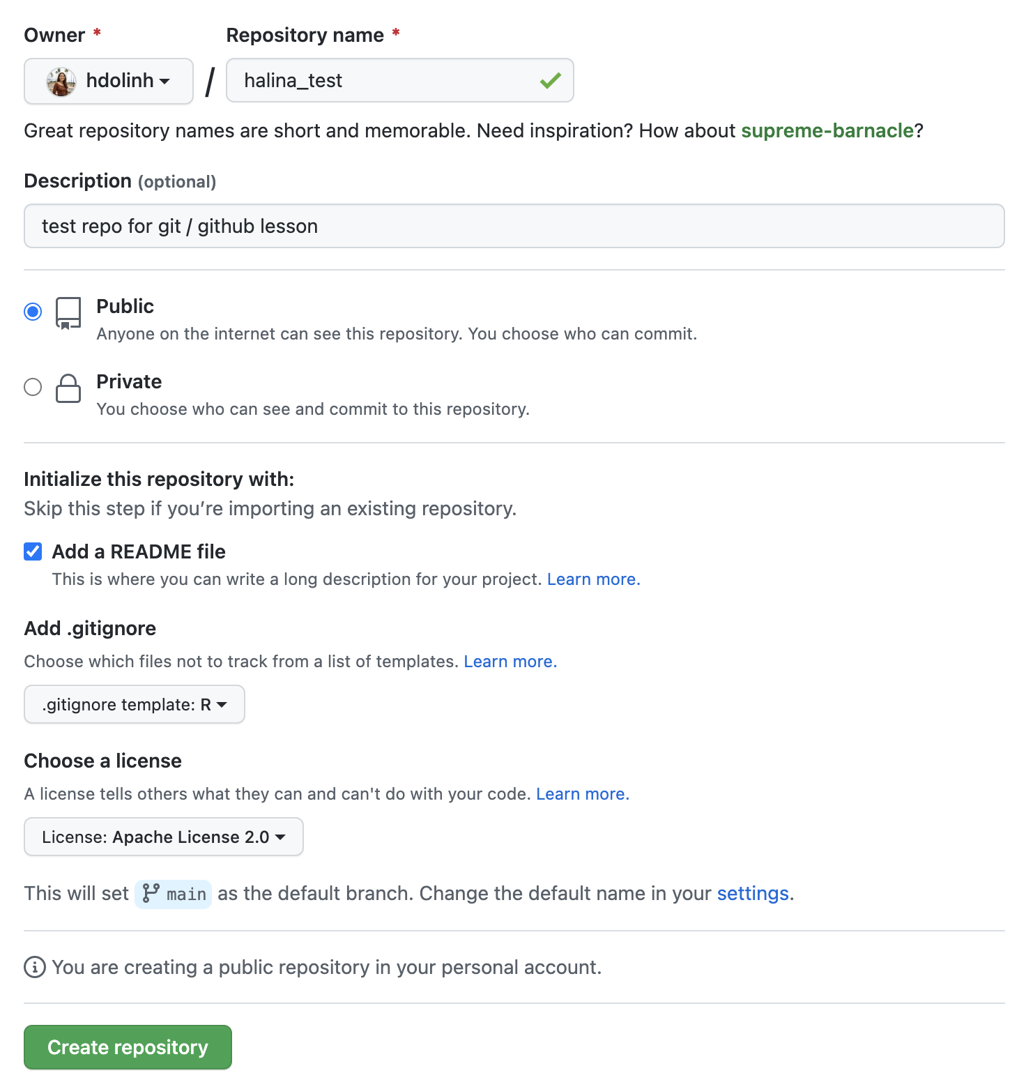 READMElicense, or.gitignorefile – doing so now can lead to merge conflicts. We can add them after our local and remote repos are linked. Name your remote repository the same as your local repository (i.e.training_{USERNAME}).Link your remote (GitHub) repository to your local Git repository. Your empty GitHub repo conveniently includes instructions for doing so. Copy the code under push an existing repository from the command line to your clipboard, paste into your RStudio Terminal, and press return/enter.